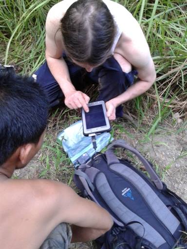 Jurgen Niedballa showing Len how to transfer camera trap data